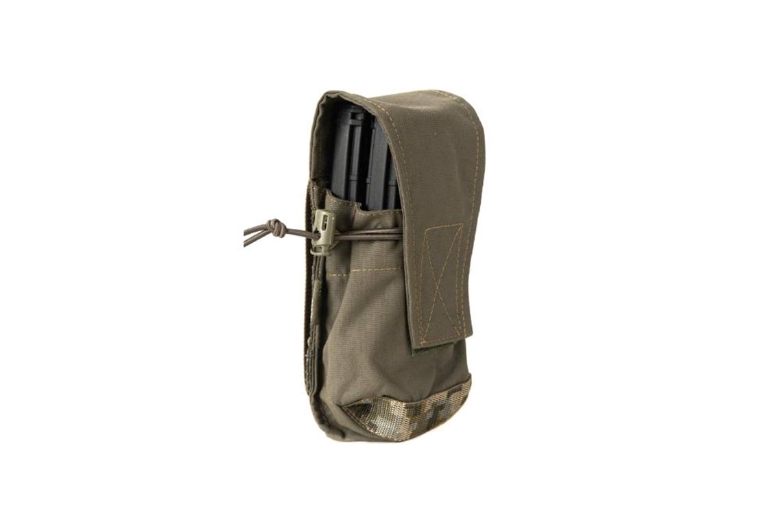 Fickan har ett snöre med en hållare för storleksjustering om 1 eller 2 magasin används. På baksidan finns en MOLLE-panel för att fästa en ficka på lastbärande utrustning, kroppsskydd eller annan utrustning.